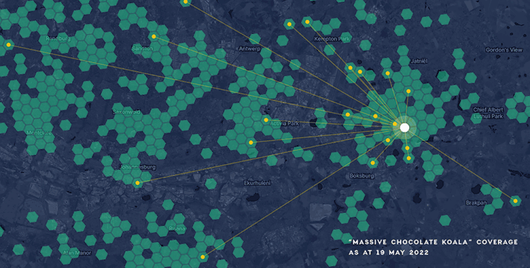 Oh well, all good, so onward we forge. Boom 2! Suddenly my gateway was alive and earning R50 to R75 per day – awesome. And then it died. Not quite dead as a doornail, more like a quivering death-rattle, earning under R10 per day. I could not understand this, until I checked the Helium coverage map and noticed that my device name, which is meant to be totally unique, came up twice when searching by name.