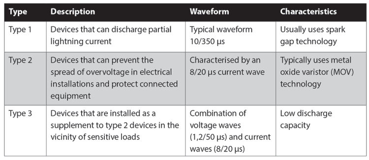 The purpose of surge protection is to protect sensitive electronic devices from transient power fluctuations. Surge protection devices are classified according to standard types: