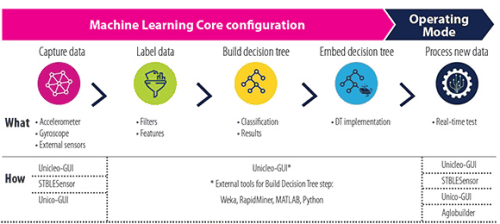 Finally, when the device is programmed, the machine learning core results can be processed using the defined, trained decision tree in your application. Developers can also get support and exchange ideas in the MEMS and Machine Learning and AI community page on the STMicroelectronics website (www.st.com).