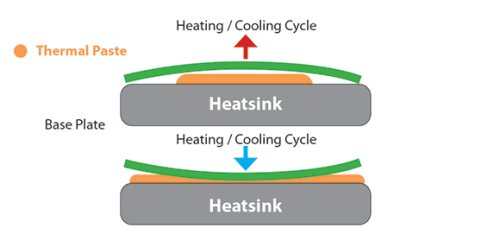 Power cycles also result in temperature changes of the device and, in turn, the interface temperature. Powered devices also exhibit their own thermal cycle during use, which can be further exacerbated by external environmental conditions. Whatever the reason, thermal changes will result in some form of pump-out effect and so the stability of the chosen TIM under end-use conditions is critical to evaluate.