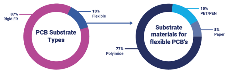 IDTechEx’s analysis expects additive manufacturing to be particularly significant to the scaling of flexible printed circuit boards. Flexible PCBs are an important part of the emerging electronics industry as they enable a wider variety of applications than conventional rigid electronics. Flexible PCBs inherently require an overhaul of traditional processing – for example, using plastic or paper rather than conventional FR substrates. Embracing a new technology enables scope for further changes, such as transitioning to new materials and additive methods. Low-temperature processing may also be imperative for PCBs made on plastics such as polyethylene terephthalate (PET), considering that these have relatively low heat tolerances.