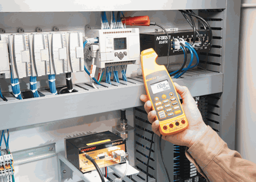 The Fluke 87V DMM is a versatile True RMS industrial multimeter which provides the resolution and accuracy to efficiently troubleshoot motor drives, plant automation, power distribution, and electromechanical equipment. It provides accurate measurement of current, voltage and frequency on VFDs, capturing intermittent signals as fast as 250 µs. It also has a built-in thermometer and temperature probe.