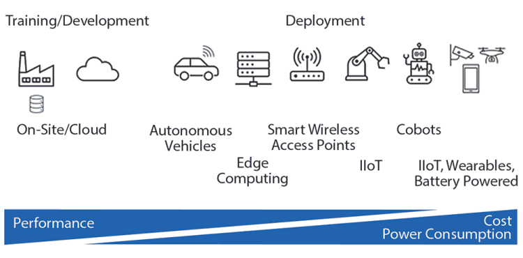 Figure 2: While performance is the main requirement during AI training, cost and power consumption rise in importance when AI models are deployed in applications.