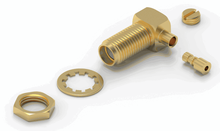 The WR-SMA is a right-angle bulkhead jack cable connector for applications up to 6 GHz that features a very space-saving design and reduced cable strain. The new model in the WR-SMA series for crimp assembly is also available in an IP67-rated version.