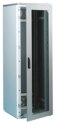 The cabinets come in either 27U, 37U, or 42U high and 600 or 800 mm deep. The 2 mm steel framework gives the VERAK enclosure exceptional strength and rigidity, with each enclosure rated at 750 kg static load capacity. Available with either steel or glass front and rear doors, and solid or ventilated top covers, VERAK is the ideal choice for both heavy industrial and telecoms applications.