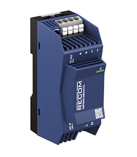 RECOM’s cost effective REFIN2U-S90/CL DIN rail AC/DC boasts a 90 W rating with a boost capability of 150% for 4,5 seconds to allow for surge loads. Input voltage range is 85-276 V AC, rated overvoltage category II up to 5000 m altitude, while the output is nominal 24 V DC, adjustable to 29 V DC. The output has a constant current characteristic in overload. The parts operate from -40°C to 70°C ambient, and a creditable 93,6% efficiency achieved contributes to cool running and a long MTBF rating.