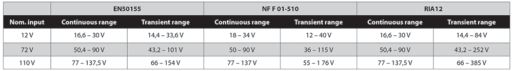 As one example, Table 1 shows the steady state and transient range of the distribution voltage that might be seen in various railway systems, as specified by the various agencies listed. Military and vehicle specifications have a similarly wide range over which their distribution voltages may vary.
