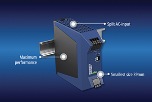 The cost-effective and reliable RECOM RACPRO1-S240E DIN-rail mount AC-DC series is only 125 x 139 mm and 39 mm wide, yet provides 240 W output. The unit operates within a temperature range from -40°C to 60°C with just convection cooling, which is extended to 70°C with derating. It can also handle surges of up to 360 W for five seconds.