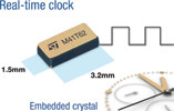 STMicroelectronics has developed a tiny combined crystal and real-time clock (RTC) IC for time, calendar and alarm functions. Housed in a 3,2 x 1,5 mm package, the M41T62 is well suited to the needs of battery-powered designs. By operating at low voltages from 1,3 V to 4,4 V, it can be driven directly from a Li-ion battery and draws only 350 nA. The device produces a stable 32 kHz signal on startup, which ensures reliable starting from many of today’s processors and subsystems such as Bluetooth modules. Additional features include oscillator failure detection (OFD), power-down time stamping and low-battery detection.
