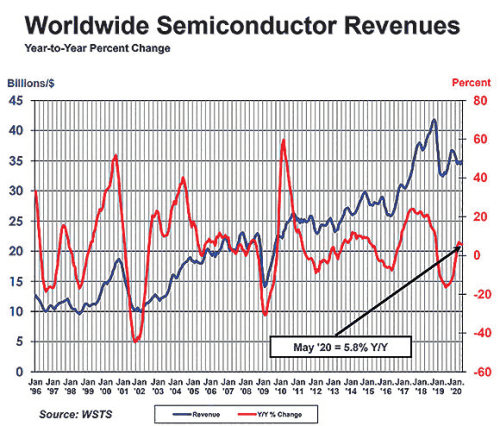 • The Semiconductor Industry Association (SIA) announced worldwide sales of semiconductors were $35,0 billion in May 2020, an increase of 5,8 percent from the May 2019 total and 1,5 percent more than the April 2020 total. Additionally, SIA endorsed the WSTS (World Semiconductor Trade Statistics) Spring 2020 global semiconductor sales forecast, which projects the industry’s worldwide sales will be $426,0 billion in 2020. This would mark a 3,3 percent increase from the 2019 sales total.
