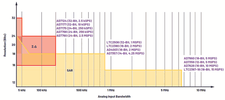 Analog Devices provides a wide range of industry-leading, high-performance ADCs to meet system requirements of several applications, be they precision-based, speed-based, or based on a restricted power budget. Just comparing one set of ADC specifications to another is not the way to choose an ADC. The overall system performance and design challenges must be considered and that’s where the choice of ADC technology or architecture comes into play.