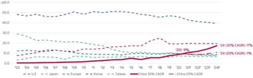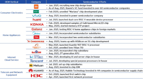 Meanwhile, Chinese consumer electronics and home appliance OEMs and leading Internet firms have also been ramping up efforts to expand into the semiconductor sector by designing chips in-house and making investments in established semiconductor firms, with notable progress made in designing advanced chips and building domestic supply chains over the past two years.