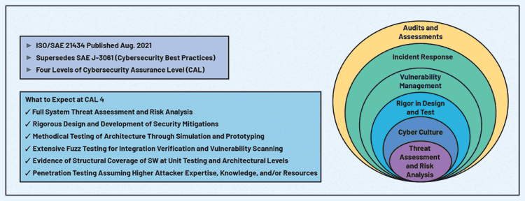 Analog Devices anticipated these concerns and addressed them in accordance with its own core design principles that place a premium value – and exhaustive scrutiny – on maintaining and enhancing security integrities from process to product. In parallel, the ISO/SAE 214342 standard on ‘Road vehicles: Cybersecurity engineering’ that was in development over three years was officially released in August 2021. It defines a similar exhaustive, end-to-end process framework with four levels of cybersecurity assurance. Automotive OEMs and suppliers are rated on a scale from one to four, with four denoting the highest level of conformance (see Figure 3).