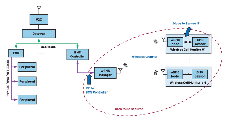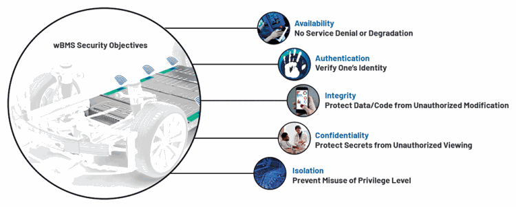 If the wBMS communication were somehow interrupted, the car can revert to a ‘safe mode’ with reduced performance to allow the driver to act, or, with complete loss of wBMS communications, come to a safe stop. This can be accomplished through proper safety design, which takes into account all possible failure modes in the system and implements end-to-end safety mechanisms that address random failures of components.