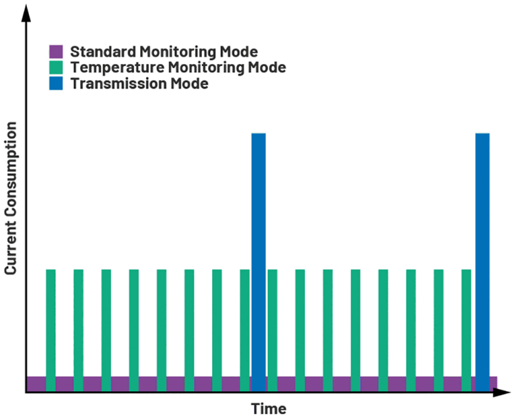 Battery life (days) = 146,66 mAh/(standard monitoring mode + temperature monitoring mode + transmission mode)