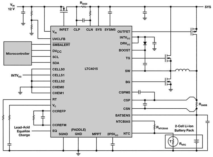 It provides advanced system monitoring and management functionality, including battery coulomb counting and health monitoring. While a host microcontroller is required to access the most advanced features of the LTC4015, the use of its I2C port is optional. The main charging features of the product can be adjusted using pin-strap configurations and programming resistors.