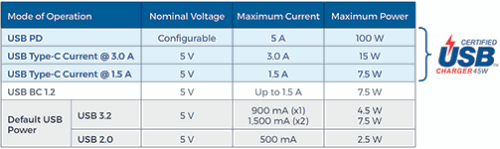 The support that USB provides for power delivery is almost as important as its data transfer capabilities. Figure 1 shows the charging power capabilities of USB Type-C chargers. USB has become the ubiquitous method for charging portable devices and this will be further entrenched by the migration to the USB Type-C connector.